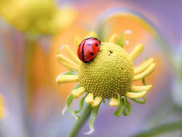 Wallpaper Ladybird on the yellow middle of a flower, macro