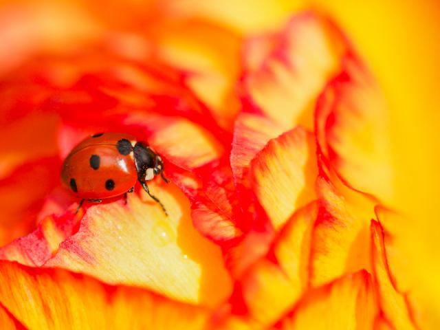 Wallpaper Red ladybird sits on a rose