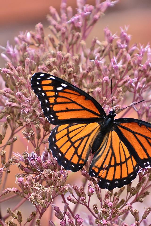 Wallpaper Butterfly sits on a pink flower, macro photography