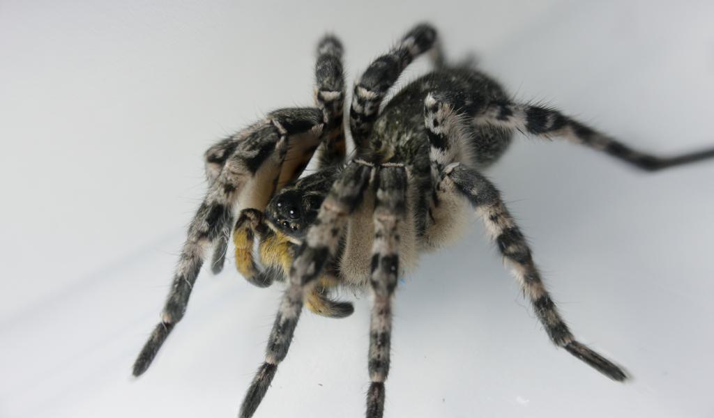 Wallpaper Big spider on gray background close up
