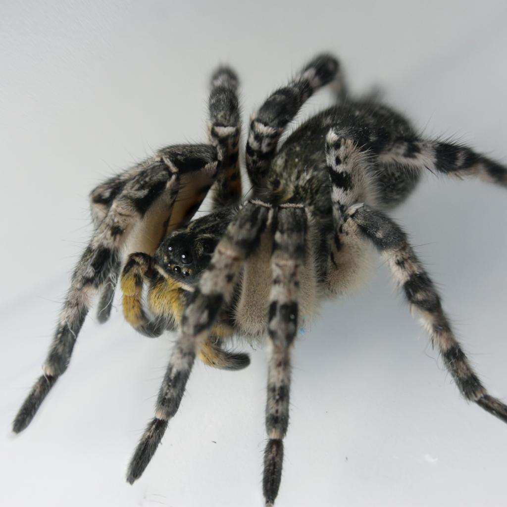 Wallpaper Big spider on gray background close up