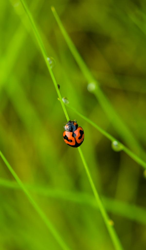 Wallpaper Red ladybug sits on the green grass