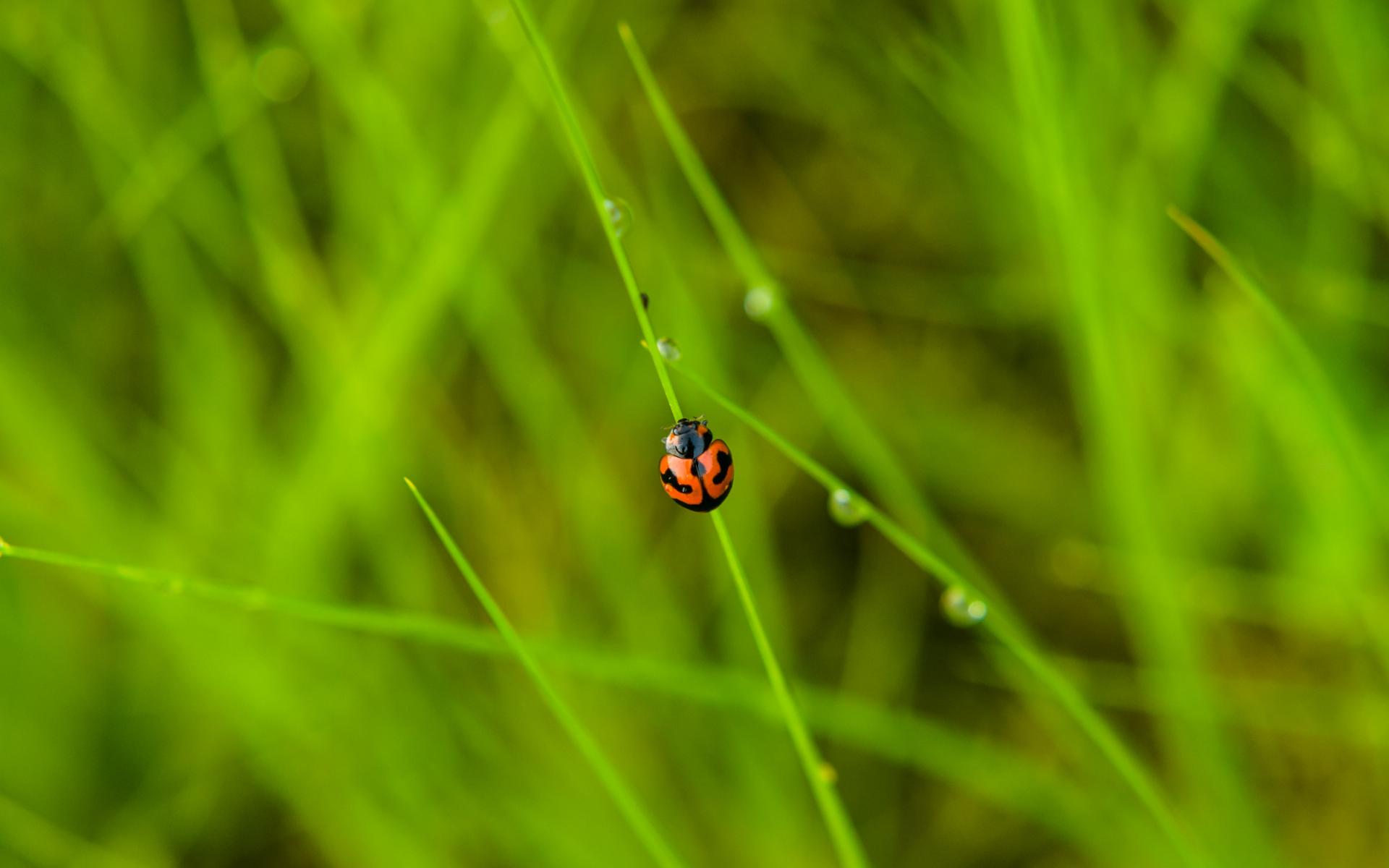 Wallpaper Red ladybug sits on the green grass