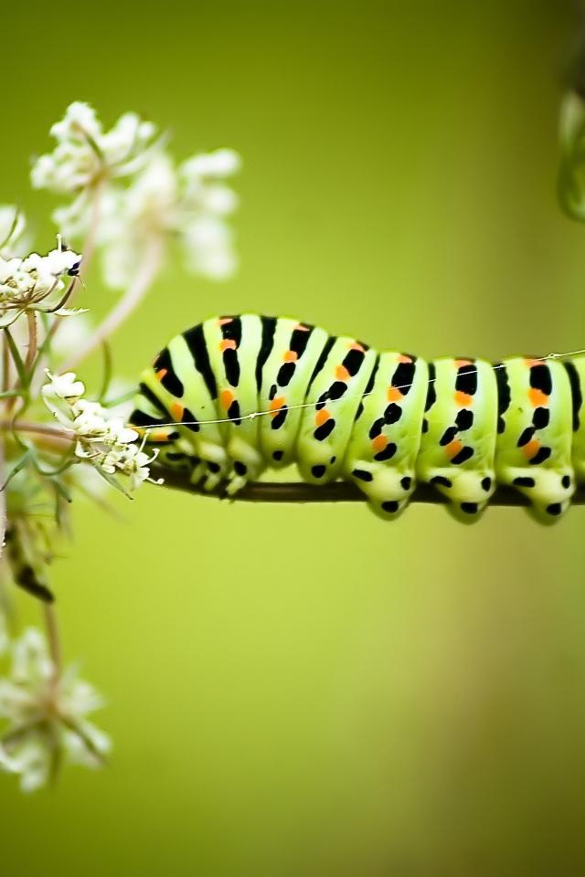 Wallpaper Big caterpillar on a white wildflower