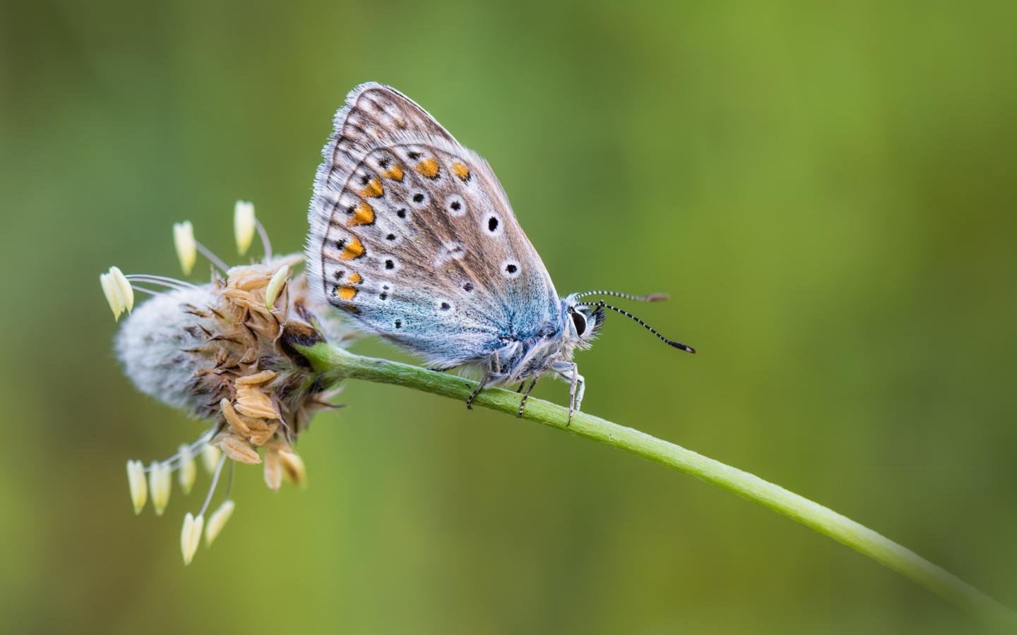 Wallpaper Blue butterfly sits on a flower