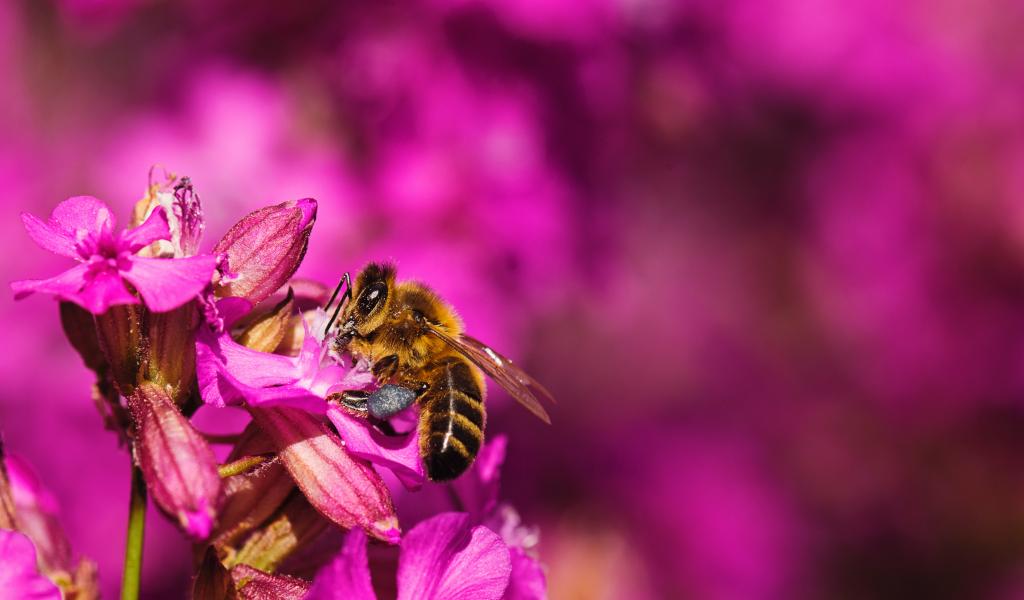 » Wallpaper Bee sits on a pink flower