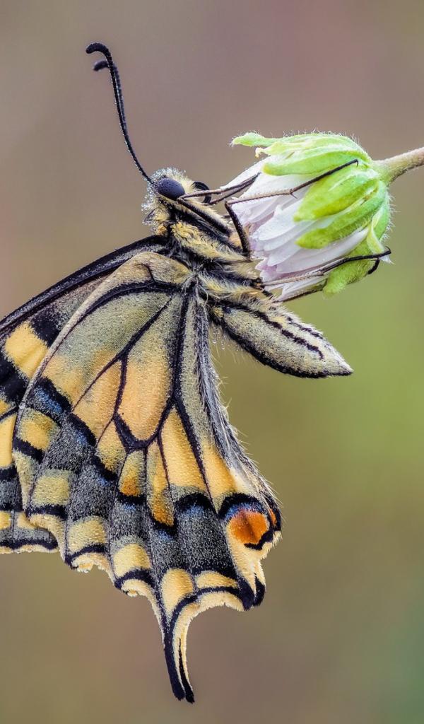 Wallpaper Beautiful butterfly machaon sits on a flower
