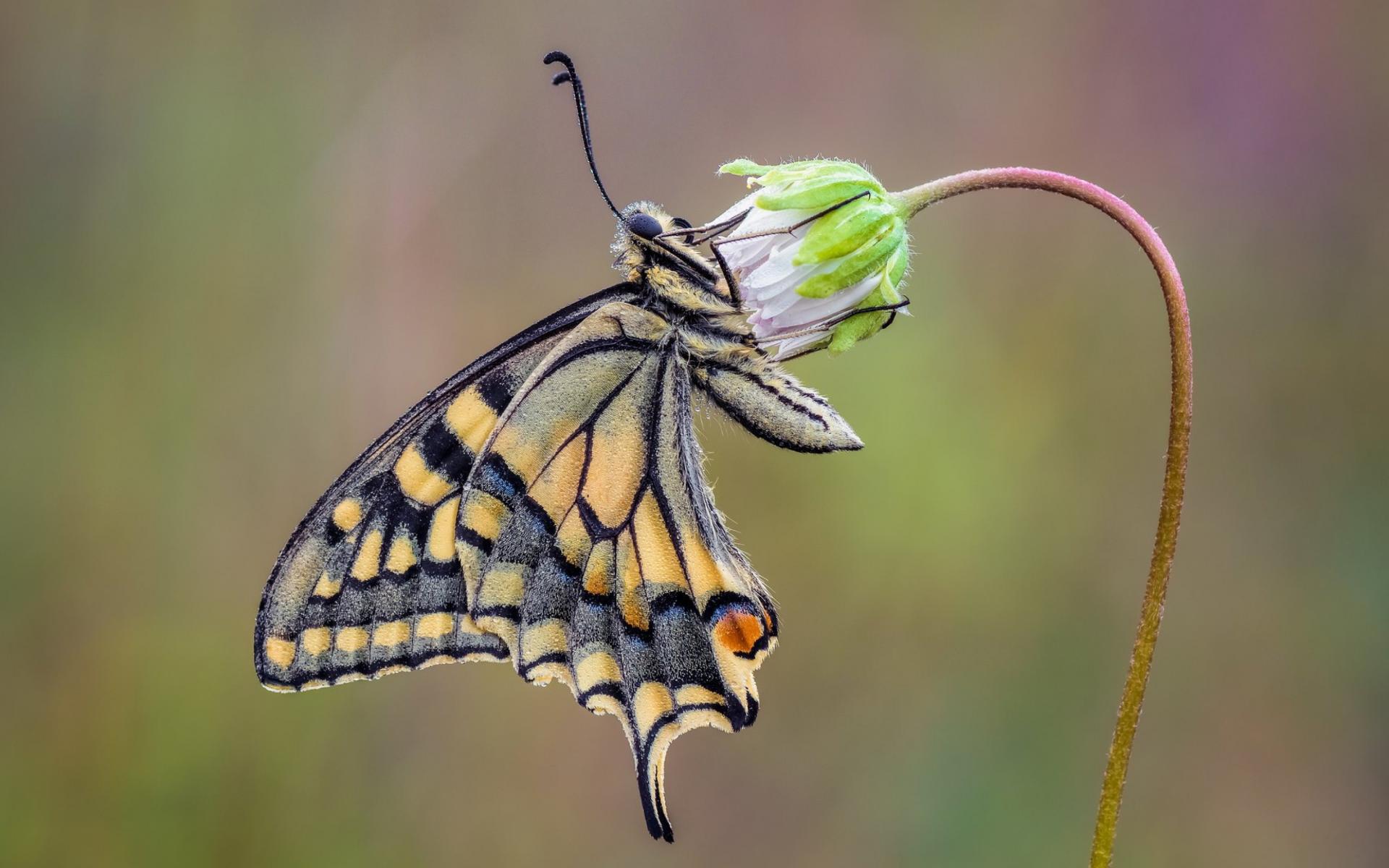 Wallpaper Beautiful butterfly machaon sits on a flower