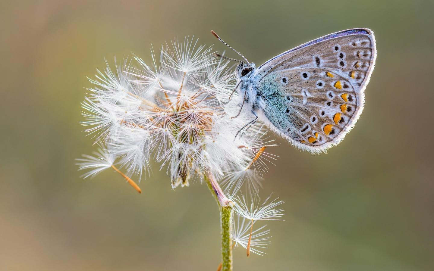 Wallpaper Blue butterfly sitting on a dandelion