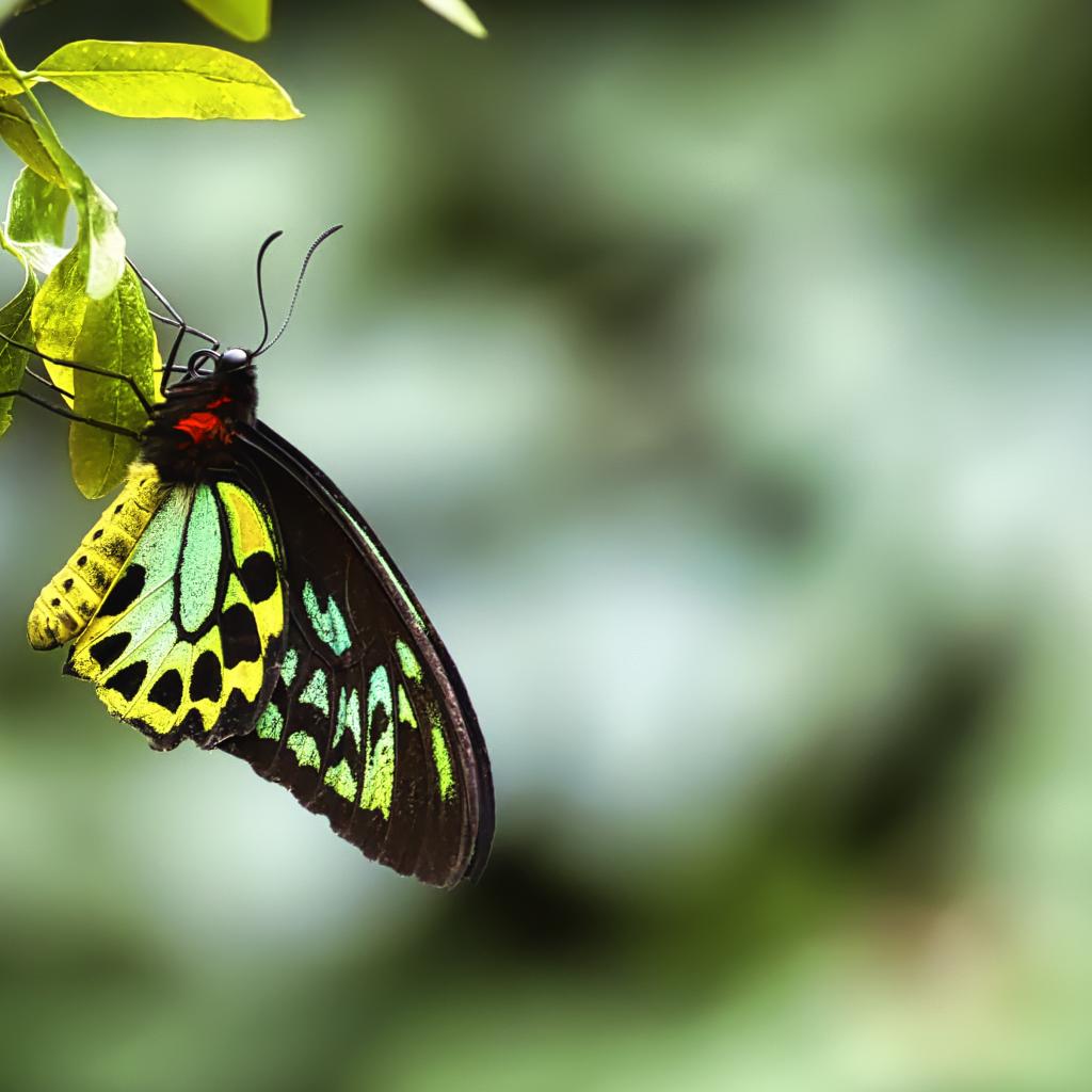 Wallpaper Butterfly sitting on a green leaf