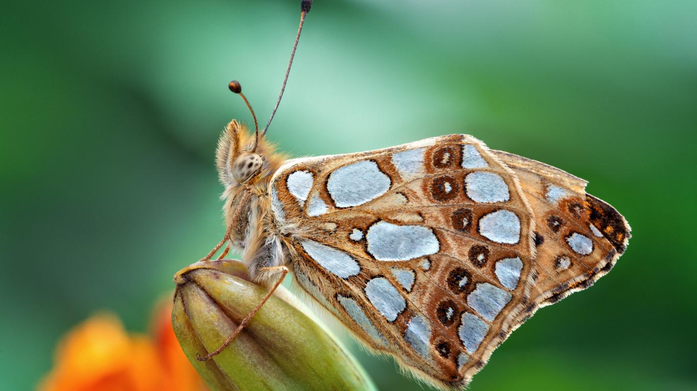 Wallpaper Beautiful brown butterfly sits on a flower bud