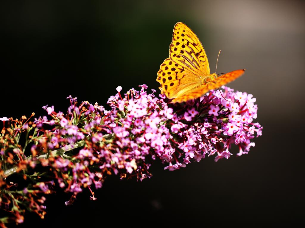 Wallpaper Brown butterfly sits on a pink flower