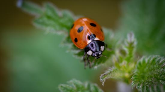 Wallpaper Little ladybug on a green leaf