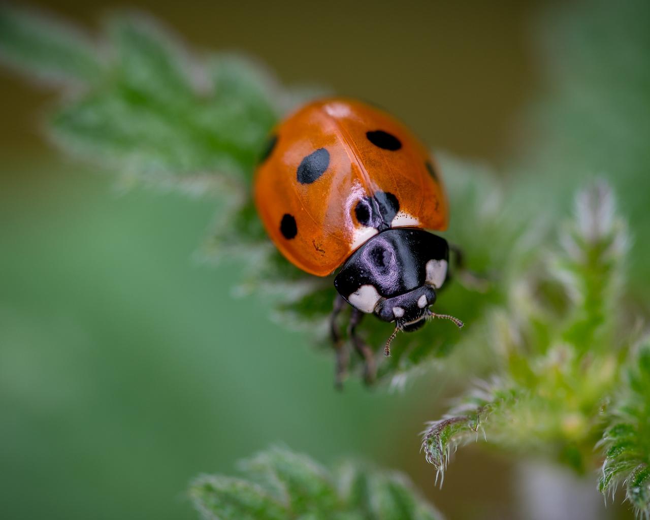 Wallpaper Little ladybug on a green leaf