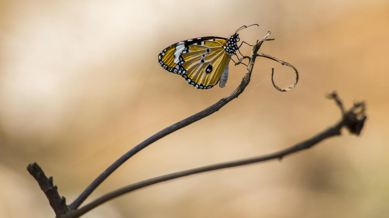 Wallpaper Beautiful butterfly sits on a tree branch