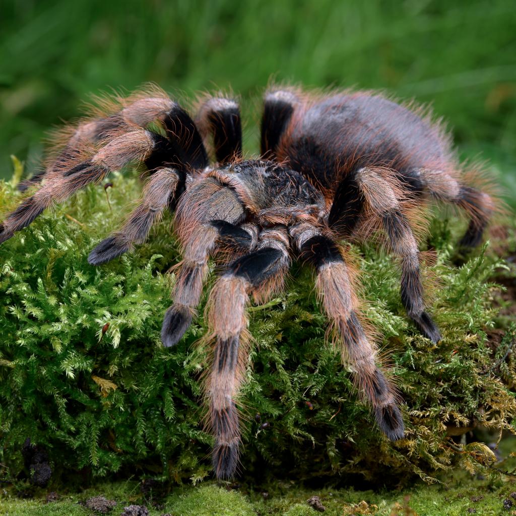 Wallpaper A large tarantula spider walks on moss-covered ground