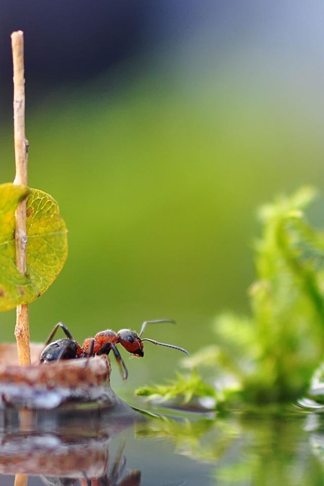 Wallpaper Little ant floats on a raft in the water