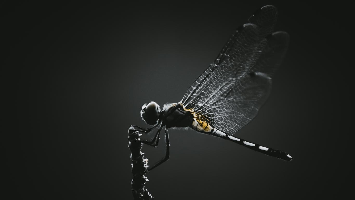 Wallpaper Dragonfly sits on a branch on a black background
