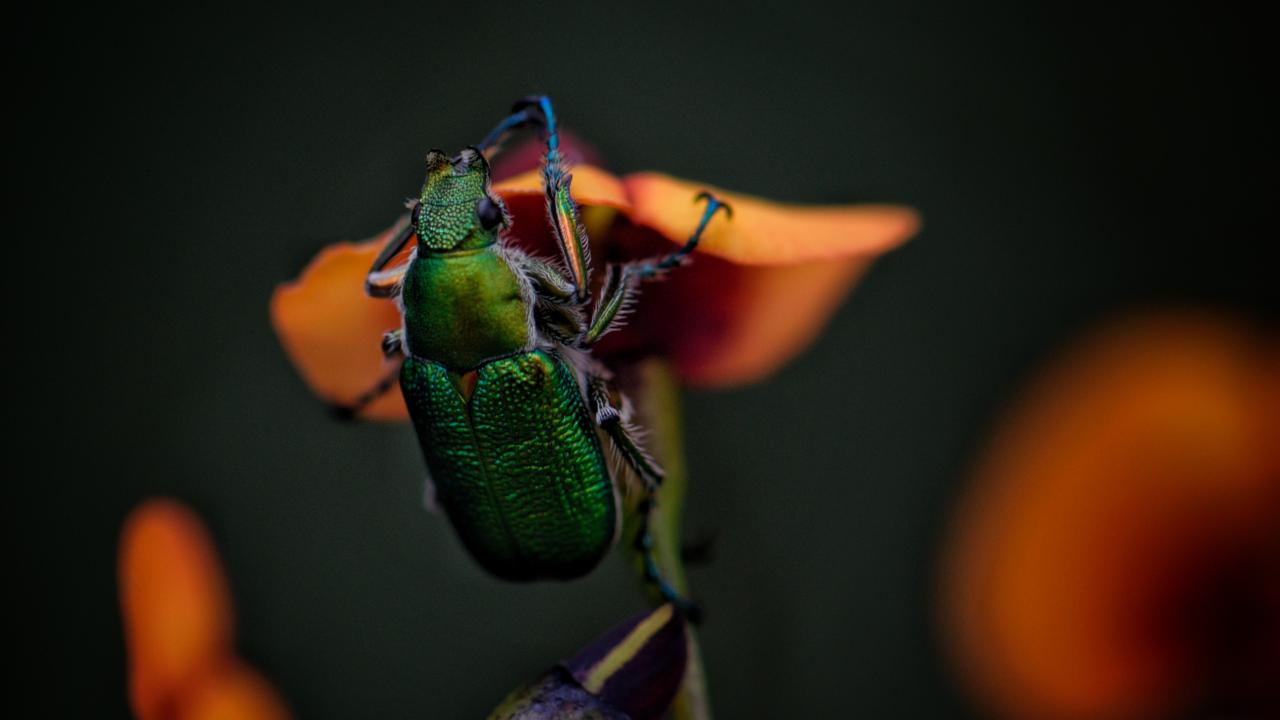 Wallpaper Beautiful green butterfly sitting on a red flower