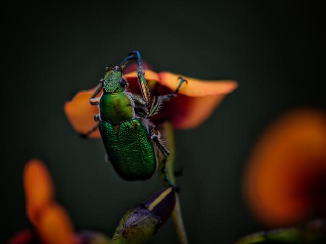 Wallpaper Beautiful green butterfly sitting on a red flower
