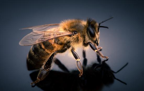 Wallpaper Small bee on a gray background close up