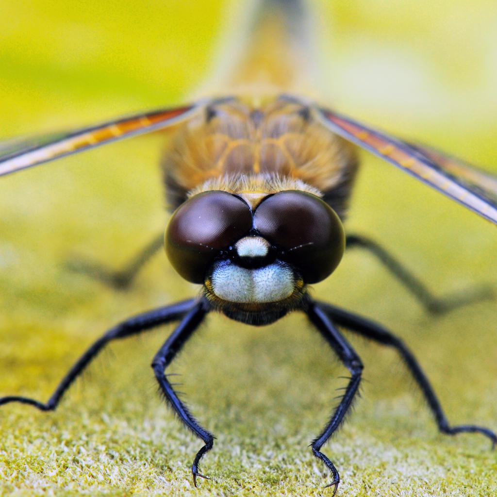 Wallpaper Dragonfly sits on a green leaf close-up photo