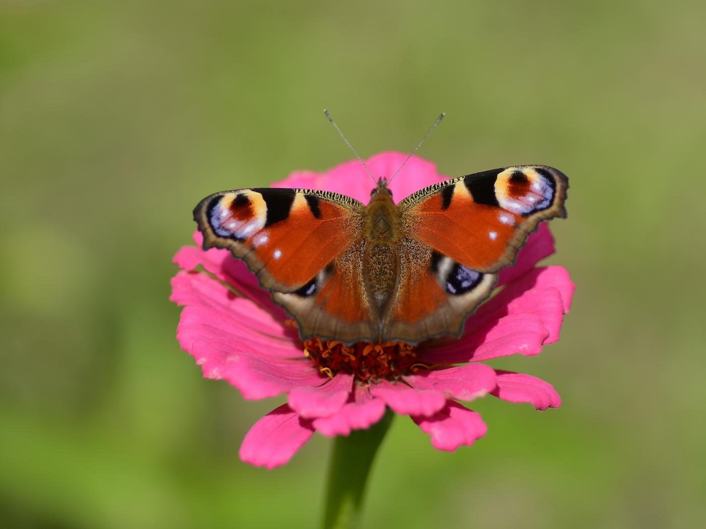 Wallpaper A butterfly sitting on a pink zinnia flower