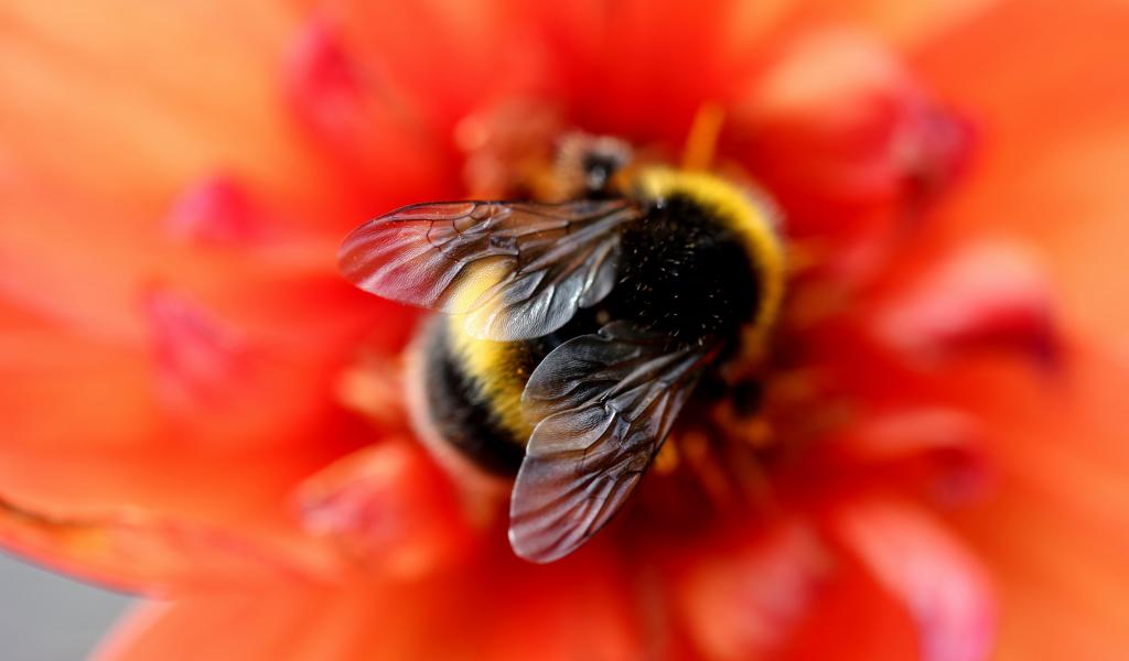 Wallpaper Little bumblebee on orange flower close up
