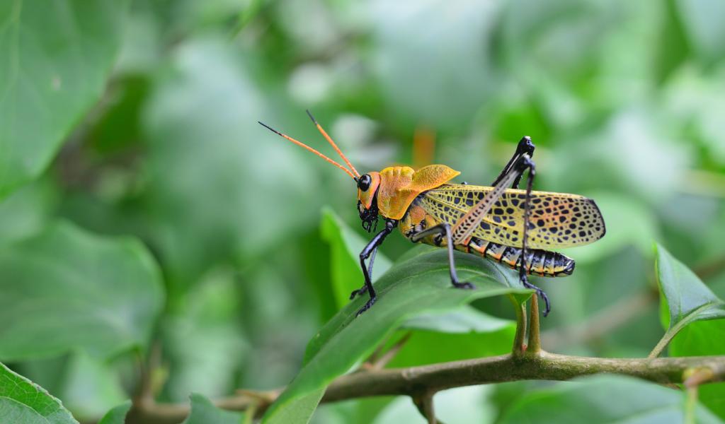 Wallpaper Large yellow grasshopper sitting on a green branch