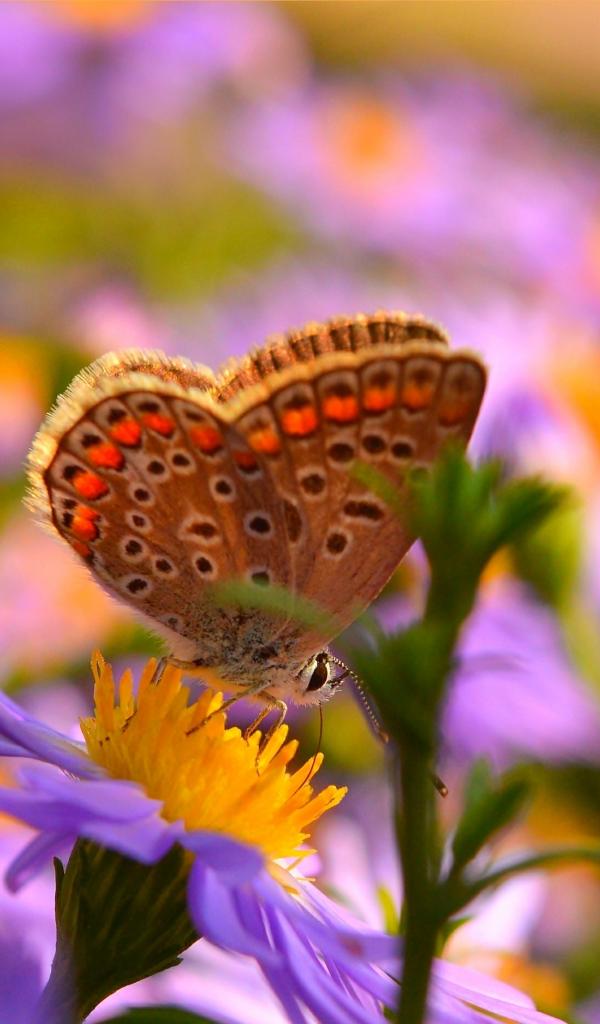 Wallpaper Brown butterfly on pink flowers