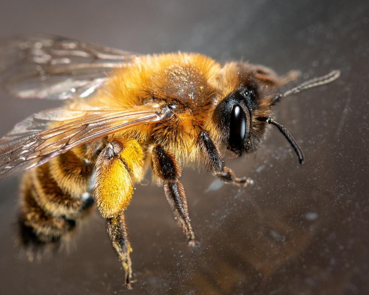 » Wallpaper Small bee on glass close up