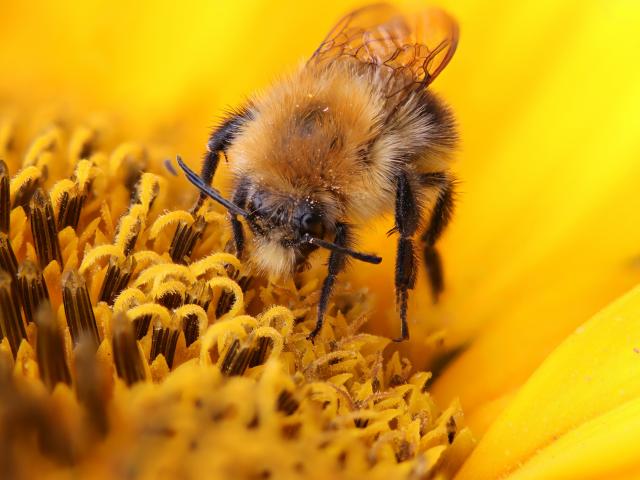 Wallpaper A bee collects sweet nectar on a sunflower flower
