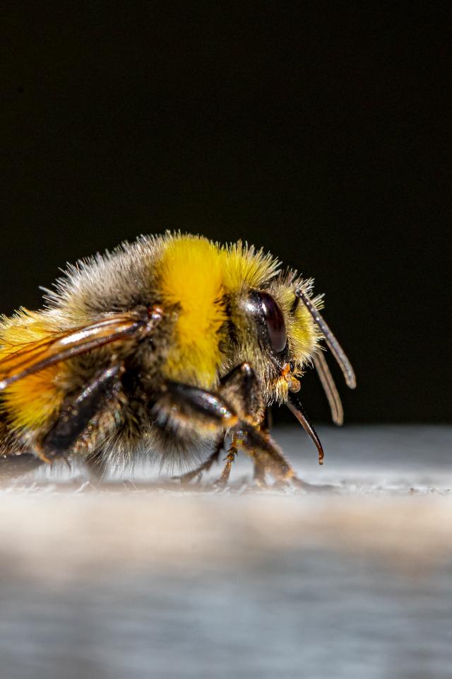 Wallpaper Big bumblebee on a black background close up