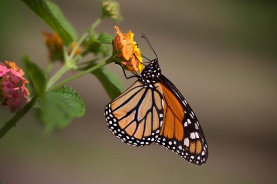 Wallpaper Butterfly sits on an orange flower close-up