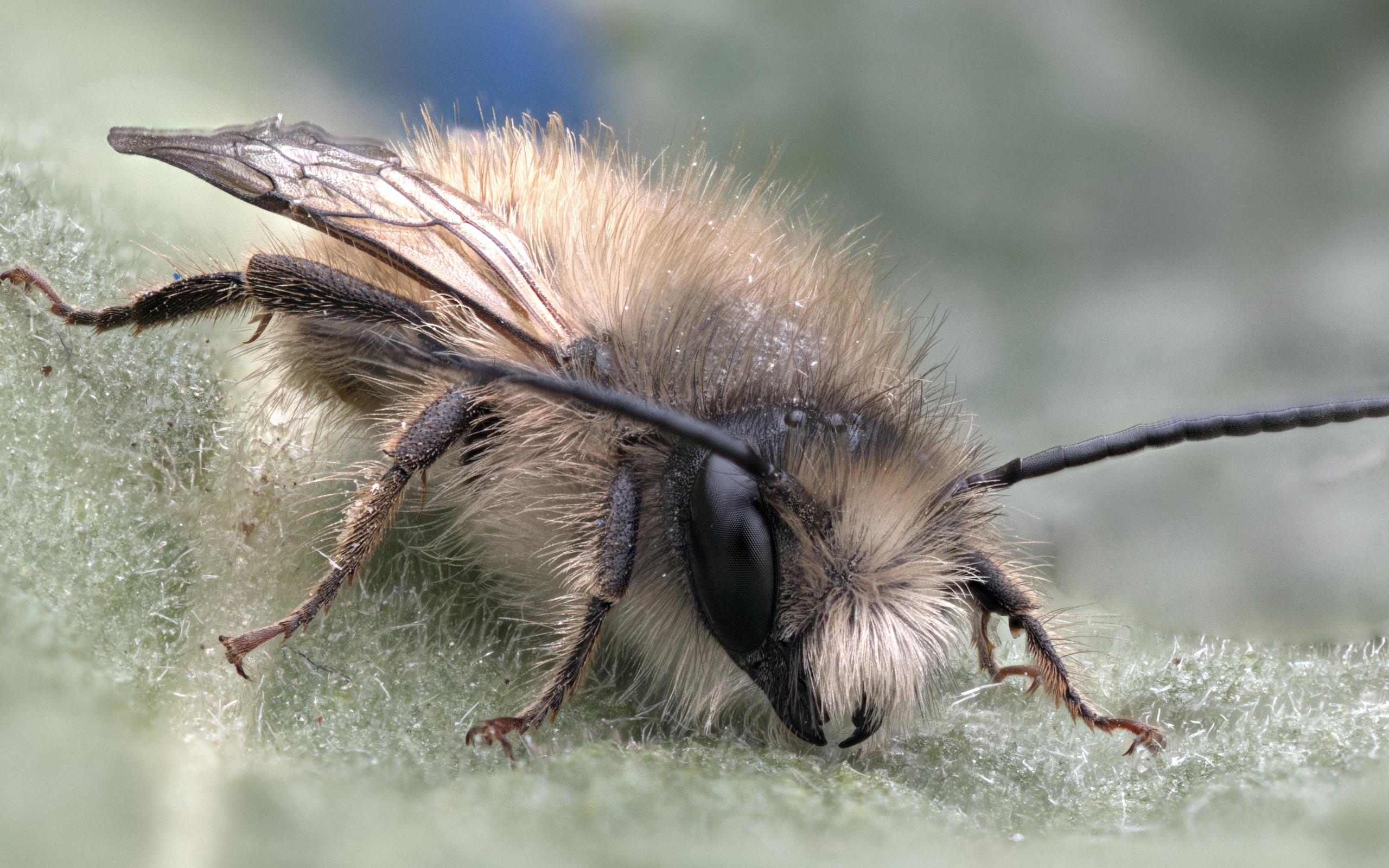 Wallpaper Small bee on a leaf close up