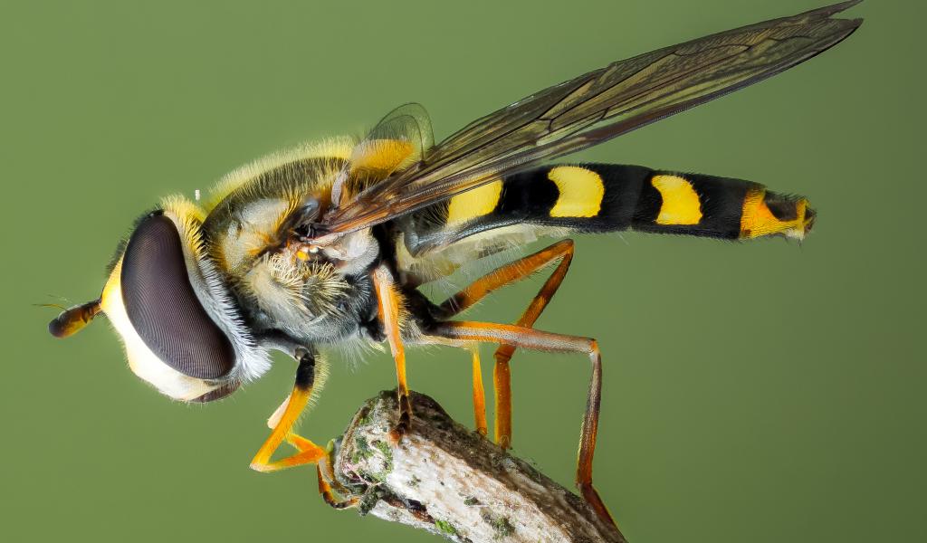 » Wallpaper Fly hoverfly on a branch close up
