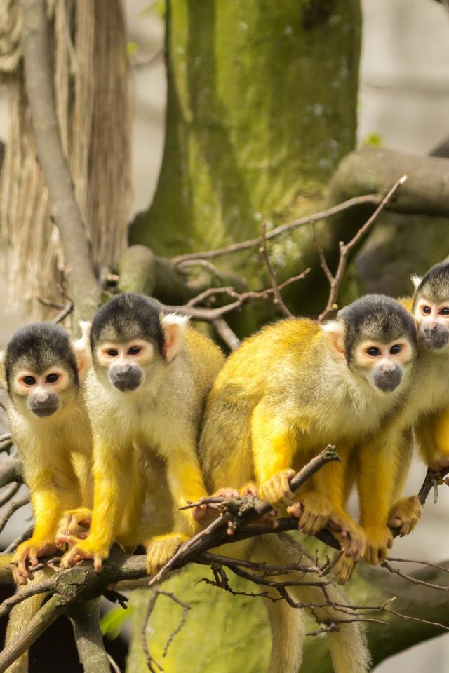 Wallpaper Four monkeys of the Simiri breed on a branch