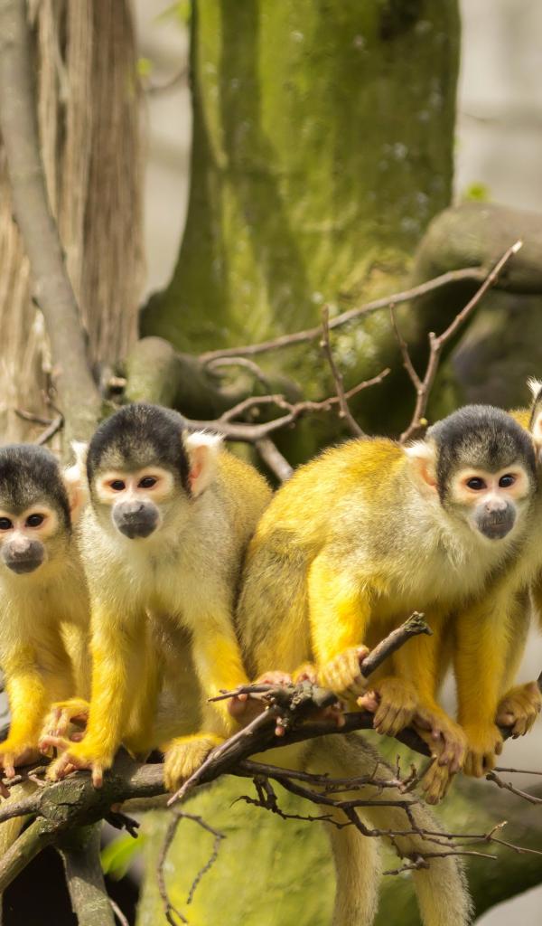 Wallpaper Four monkeys of the Simiri breed on a branch
