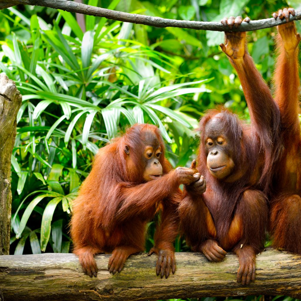 Wallpaper The orangutan family sits on a branch