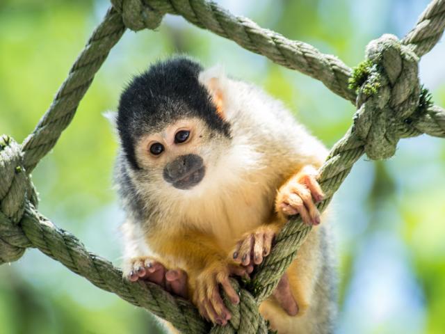 Wallpaper Capuchin monkey sits on a grid
