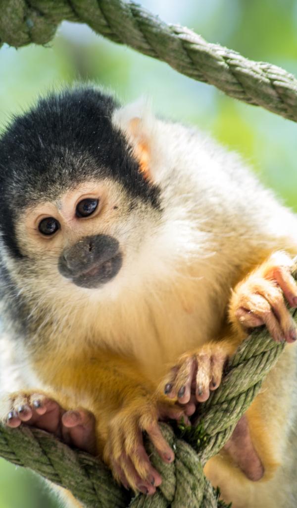Wallpaper Capuchin monkey sits on a grid