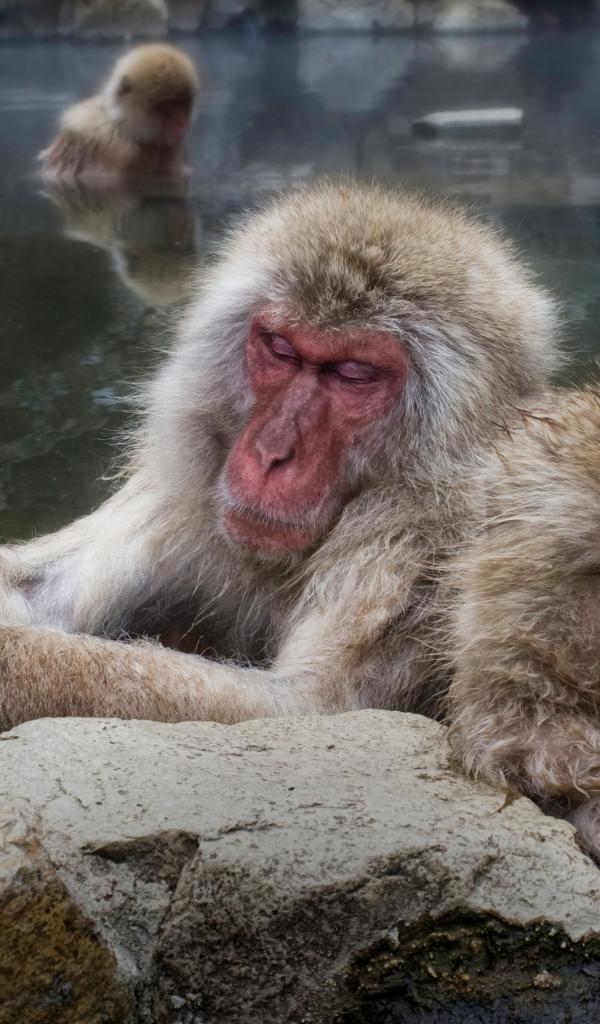 Wallpaper Monkeys bask in hot springs