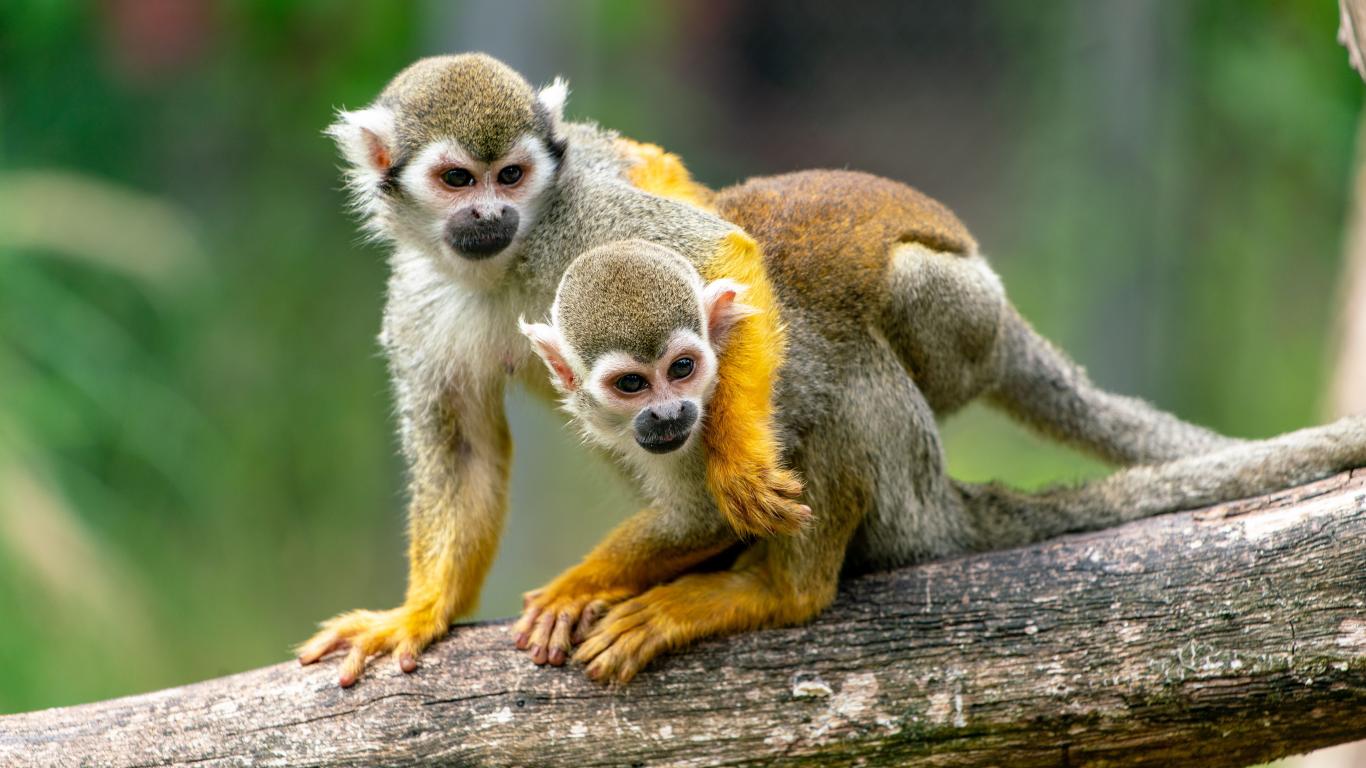 Wallpaper Two saimiri monkeys sitting on a branch