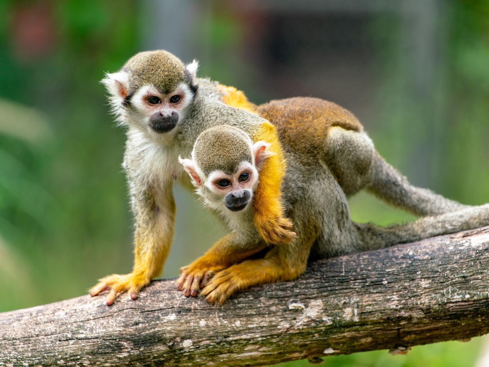 Wallpaper Two saimiri monkeys sitting on a branch
