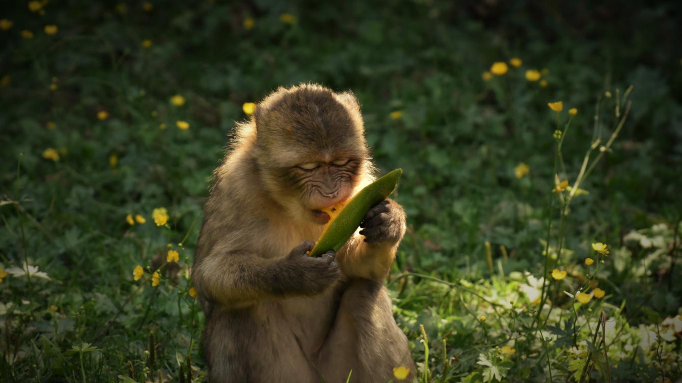 Wallpaper A monkey gnaws a branch