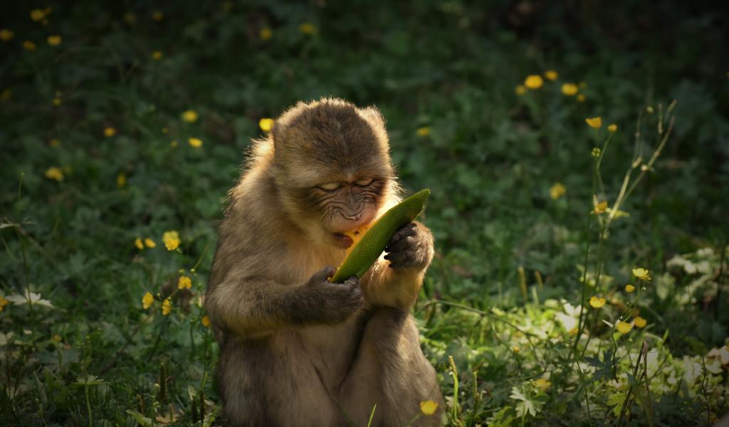Wallpaper A monkey gnaws a branch