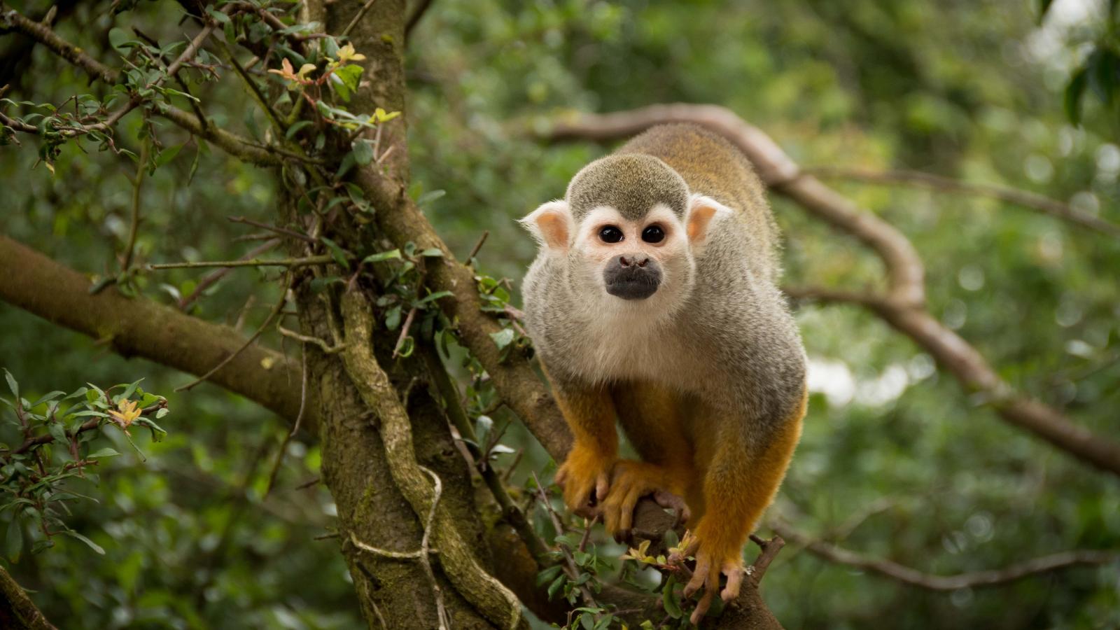 Wallpaper Red-haired funny squirrel hanging on a tree