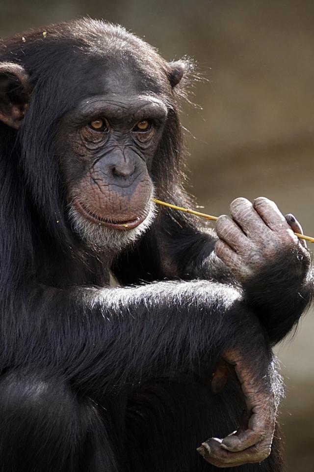 » Wallpaper Chimpanzee with grass in mouth