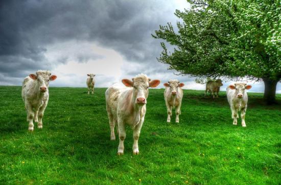Wallpaper White cows grazing on a green meadow