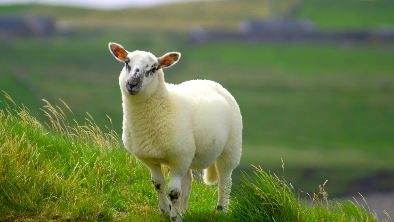 Wallpaper Fluffy white sheep on green grass